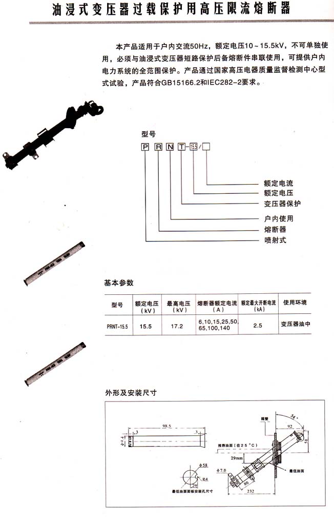 XRW11和XRWG11兩種限流式跌落熔斷器就是我廠根據(jù)國內(nèi)噴射跌落熔斷器在運(yùn)行中經(jīng)常出現(xiàn)的問題,改進(jìn)而成的,屬國內(nèi)空白產(chǎn)品。
